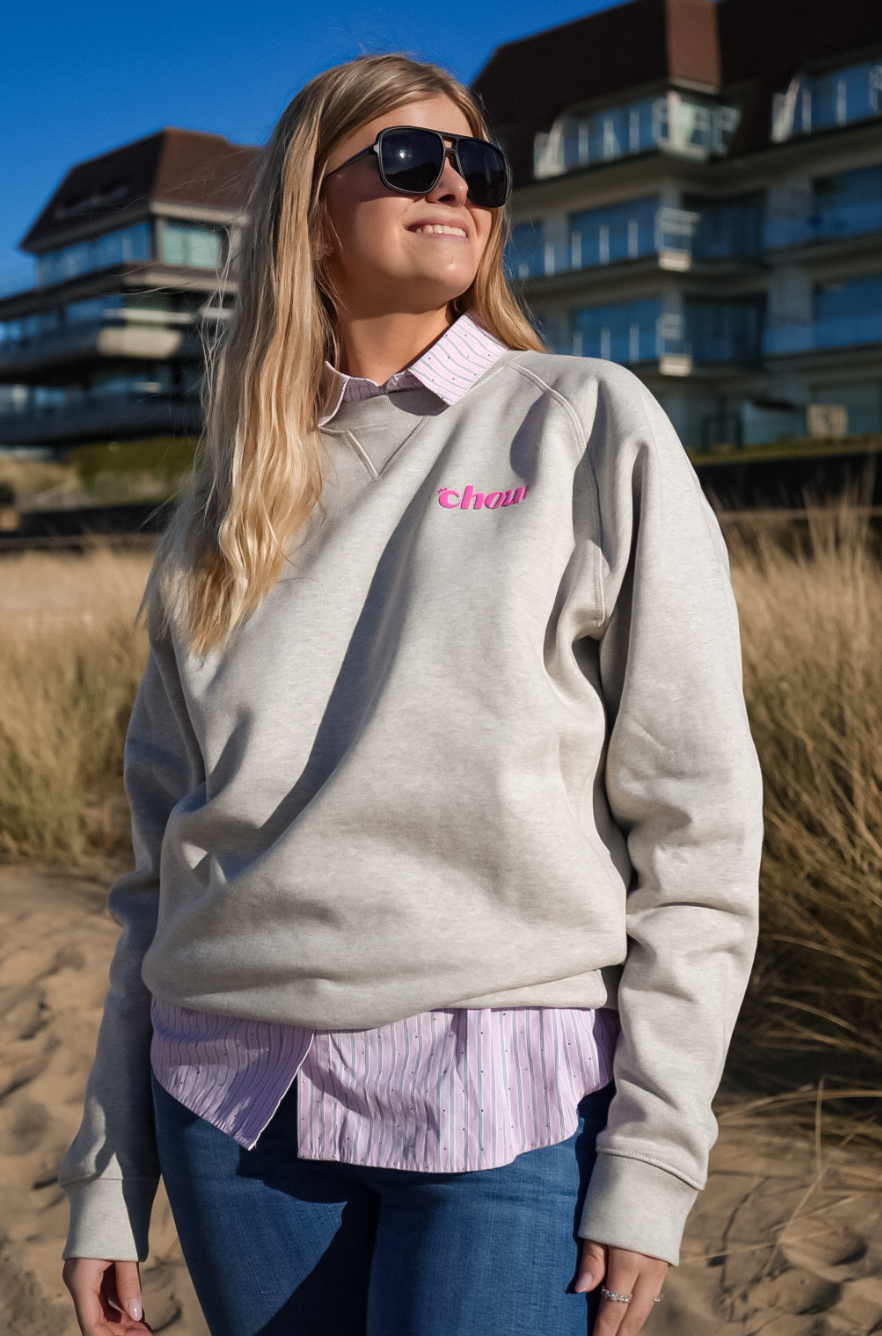 Welcome to The Chou Club Essentials: the ultimate go-to for cute meets cozy. Featuring our signature puffy logo on the front and a heart detail on the back, this ultra-soft sweatshirt is made from 100% organic cotton.